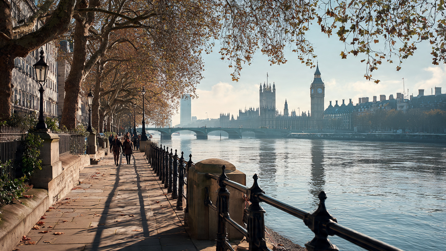 The Thames acts as a visual guide through central London. Walking beside the river connects multiple districts without the need for transport. This stretch allows visitors to absorb the city’s scale at a comfortable pace.